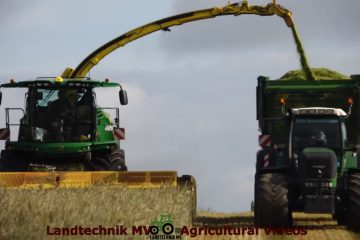 GPS häckseln mit einem mit einem nagelneuen John Deere 9700i und Zürn Profi Cut 700 Direktschneidwerk, für den Transport sind verschiedene Fendt, Claas, Case und John Deere Traktoren im Einsatz. Auf dem Silo arbeiten ein Fendt 936 und ein Claas Xerion 5000. — Landtechnik MV – Agricultural Videos