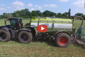 AgrarBlick — CLAAS XERION 5000 Blackline mit Schwanenhals-Güllefass, KAWECO DOUBLE TWIN, vom Lohnunternehmen Marco Meyer aus Bösel