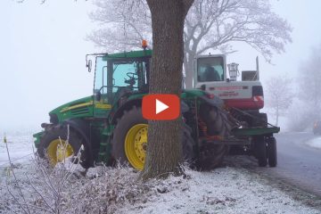 Ein Traktor mit Tieflader wollte abbremsen, klappte dann aber zusammen und kam neben der Straße zum Stehen. — Nielshth