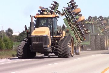 Challenger MT875C und John Deere auf der Straße