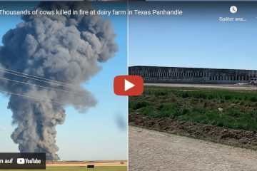 18.000 tote Kühe – TEXAS – Bei einer großen Explosion (Ammoniakgase und überhitzte Maschine) auf einer Farm in Texas kamen etwa 18.000 Kühe ums Leben. Ein Arbeiter wurde schwer verletzt und sein Leben ist in Gefahr. Es handelt sich um den Hof des friesischen Milchbauern Frank Brand.