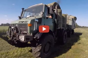 2018Heute haben wir die gepressten Heuballen zum wickeln gesammelt. Unimog U1700 John Deere Case HW80–Unimog Team Fitzen