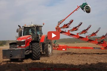 Pflügen mit einem John Deere 8R 410 und einem Massey Ferguson 8737, jeweils mit einem Kverneland PW 10 Schar Pflug. Ein John Deere 8370RT mit Horsch Joker 10RT arbeitet vorweg. — Landtechnik MV – Agricultural Videos