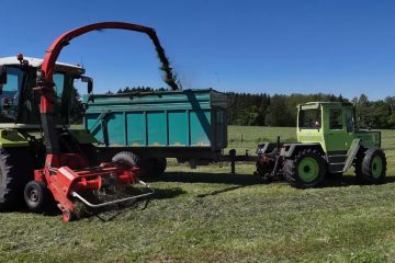 Grashäckseln 2025 mit Claas Xerion, Kemper und MB Truck am Muttertag. Peter G.