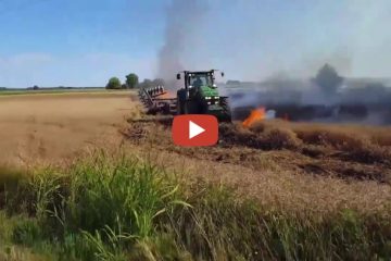 Das brennende Feld wurde durch einen Traktor ausgelöscht Landwirt riskiert sein Leben, um ein Lauffeuer zu stoppen