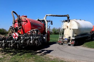 Vervaet Trike beim Strip Till- Verfahren, MAN LKW, JohnDeere 6R 145 Gespann. Naturdünger einarbeiten im Strip Till – Verfahren in Goch, NRW, im April 2025. Landmaschinen und Fahrzeuge!