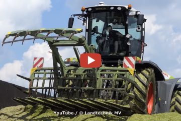 GPS mit Claas Jaguar 980, Claas Xerion 5000 Trac VC auf dem Silo. Claas und Fendt Traktoren für den Transport. — Landtechnik MV – Agricultural Videos
