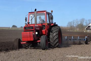 iOWNaFERGUSON –Verschiedene toll aussehende Oldtimer-Traktoren beim Pflügen des Feldes bei einem großen Pflugereignis vor einigen Jahren. iOWNaFERGUSON