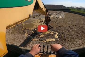 Dänemark – Gülle mischen in einem runden Silo mit einem Claas-Traktor… A H Pedersen