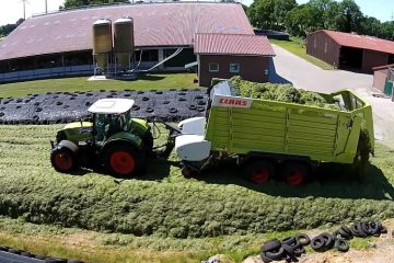 Luftaufnahmen von allen Abschnitten der Grassilageernte. Steenfelde . Schlepper: Arion 650, Arion 620, Axos 330. -Dirk Meinders-