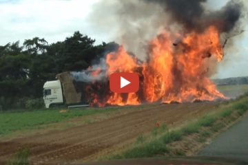 LKW mit Heu fängt Feuer