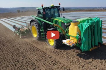 Aussaat von Mais in Frankreich mit einem John Deere 6230R und einem John Deere 6175R