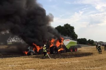 Am 04.07.15 – fing ein Traktor samt Strohpresse Feuer. Nur wenige Augenblicke später stand das Gespann im Vollbrand…-Der Westreporter-