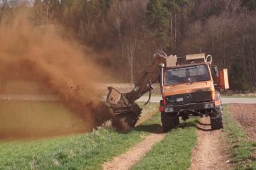 Lohnunternehmen Meyer beim Grabenfräsen mit einem Unimog. -Offys Agrarvideos-