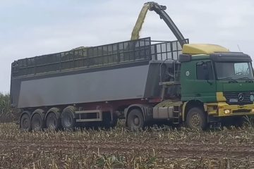 Agrarvideo mv — Gut Hohen Luckow Mais häckseln 2024 – .MB Actros-XL mit einem Kelberg Quatro auflieger. John deere 9520R TraKtor – Claas Jaguar 970 Häcksler.