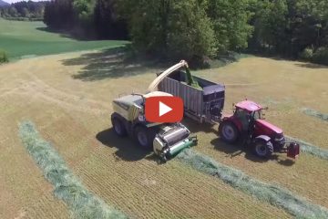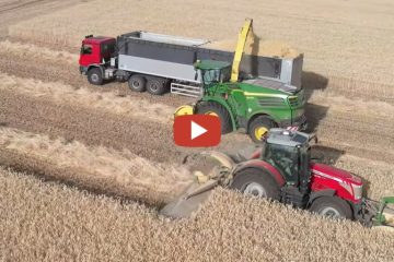 GPS Triticale Ernte 2022 — Massey Ferguson 8670 mit Krone Mähwerk und einen John Deere 8700i mit Pickup beim häckseln. — Agrarvideografie Boerde