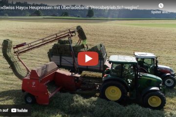 Etwas Besonderes –Heupressen mit Überladeband – Pressbetrieb Andreas Schwegler beim Heupressen mit einem John Deere 5100 und Welger Hochdruckpresse — feruontour