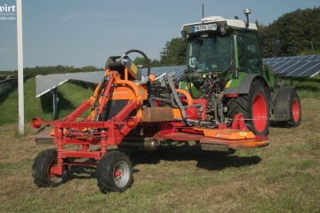 Eigenbau: Mulcher mit lenkbarem Fahrwerk — landwirt-media.com — Mit dem Mulcher in der Nische unterwegs ist Stefan Schropp in doppelter Hinsicht. Mit seinen Dienstleistungen – Reinigung und Grünpflege von Solarparks