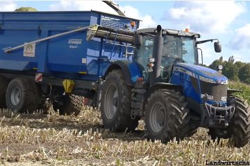 Landtechnik FHD — Miscanthus Ernte 2024. Gehäckselt wurde mit einem Claas Jaguar 970 (40000). Abgefahren wurde mit New Holland T7 270, Massey Ferguson 6180, John Deere 6145R und Fendt 311 Vario.