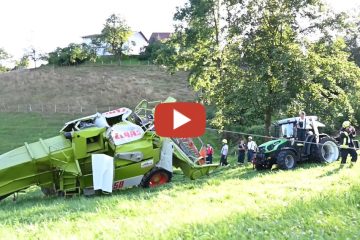 News-Clip: Landwirt sprang von Mähdrescher – Insgesamt überschlug sich der Mähdrescher sechs Mal.. Der schwer verletzte Landwirt wurde mit dem Rettungshubschrauber in das Kepler Uniklinikum geflogen. — TEAMFOTOKERSCHI