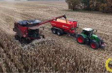 Ein NEXAT mit NEXCO Erntemodul beim Körnermais dreschen 2025. Am Nexat Erntemodul war ein 31 Reihen, 14m Meter breites Geringhoff Maisschneidwerk (Maisgebiss) mit 50cm reihenabstand montiert. Stefan Lübke