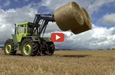 Hier ein Video mit reichlich Sound von einem MB Trac 1300 Turbo. Dieser ist ausgestattet mit einem Hecklader und Rückfahreinrichtung.