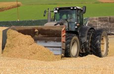 Siloarbeiten in England mit einem Massey Ferguson 399 Turbo – Silo ist ca. 10 m hoch.