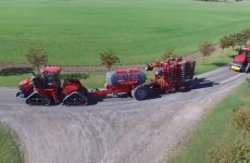 Kartoffeln Pflanzen mit einen Challenger MT 765D und Miedema CP 42 legemaschinen. Einen bodemfräse bereitet das Land. Düngerausbringung, Pflanzenschutz und Dammaufbau in einem eine Durchgang.