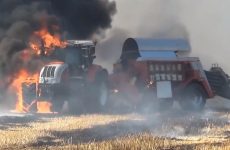 Feuerwehr im Einsatz – Traktor brennt – Feuerwehr löscht Brand