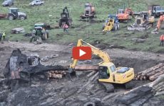 Dieser Bagger ist sehr tief versenkt. Mit vereinten Kräften ist jedoch viel möglich