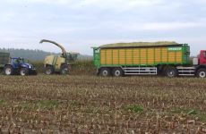 Krone BIG X 700 mit EasyCollect 903 (12 Reihen) und als Abfahrer LKWs und Traktoren.