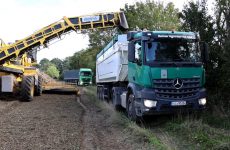 Ropa Maus 6 , MAN-, Mercedes-, Scania LKW. – Zuckerrüben Ernte in Bedburg – Hau, NRW, Deutschland im September 2025. Landmaschinen und Fahrzeuge!