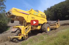 *Rapsernte Steil und Nass – Burri Maschinenbetrieb mit seinem New Holland TX 65 3×3 und seinem Cat Lexion 465 mit Raupenfahrwerk bei der Rapsernte — feruontour
