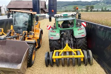 Neues Fahrsilo füllen mit Mais. Silotools, Fendt 718 und Pneulader im Einsatz. feruontour