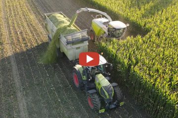 LU-Eble — Es geht wieder los: Die Mais Saison 2023 hat gestartet – Lohnunternehmen Heitz GmBh beim Mais Häckseln für eine Biogas Anlage. Claas Jaguar, Claas und John Deere Traktoren…