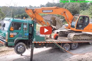 Selbstlader LKW lädt Doosan Bagger
