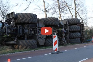 Niederlande – Der Claas Xerion Gülleausbringer des Lohnunternehmens Unicom ist nach einer Reifenexplosion umgekippt…- 112 Ijsselland