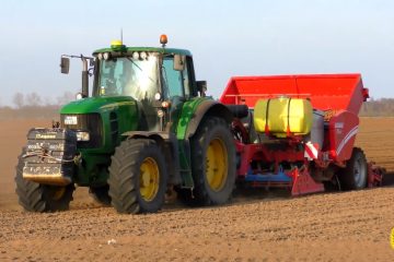 Die AGP Lübesse mit einem John Deere 7530 und der Grimme GL430 beim Kartoffelpflanzen. -Agrar Paparazzi-