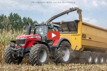 Mais XXL 2020 bei Van Bakel Dairies Vredepeel mit einem Claas Jaguar 980 und 7x Massey Ferguson. – Mike van den Hardenberg