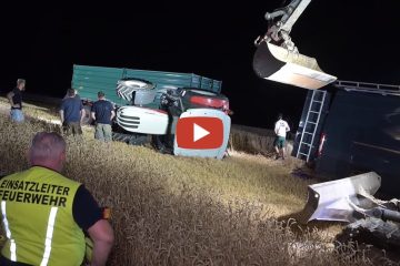 Ein Landwirt war mit dem Traktorgespann mitten auf einem Getreidefeld verunfallt. Der Lenker konnte sich unverletzt aus dem Traktor befreien – TEAMFOTOKERSCHI