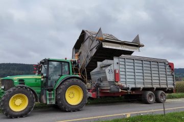 AgrarBlick — LU. Julian Bromann-Behrens 2023 – GPS Ernte.. Feldverladung mit Überladestation Claas Häcksler und Fendt Traktoren