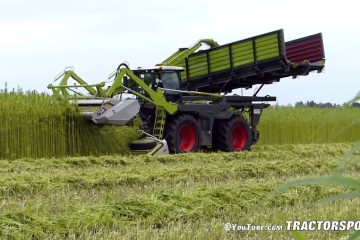 Industrie Hanf ernten mit eine umgebauten Claas Xerion 4000