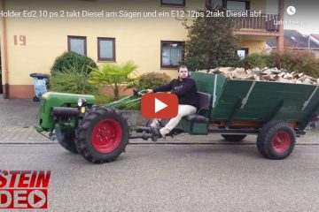 Herbst 2020 — Holder ed2 10 ps 2 takt Diesel am Sägen und ein E12 12ps 2takt Diesel abfahrenmit einem Eigenbau abladewagen — N-stein Video