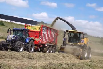 Kamasu666 Agri Videos – LU Herens – Das Gras wird mit einem New Holland FR780 gehäckselt. Für den Transport stehen uns 2 New Holland T7 310 und 270 mit Pöttinger Silierwagen zur Verfügung.
