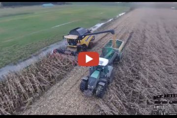 Agrartechnik Börde Lamstedt — Lohnunternehmen Trinkies am Maisdreschen mit einem Drescher New Holland CX8080 mit Kettenlaufwerk und ein Fendt 824 Vario am abfahren.