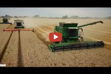 Slowakei — Getreideernte 2022 mit 7 Erntemaschinen (John Deere und Claas Lexion) auf einem 190 ha großen Grundstück. — Števo7
