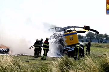 04-07-2015 New Holland Häcksler im Feuer in Berghem -112brabantnieuws-