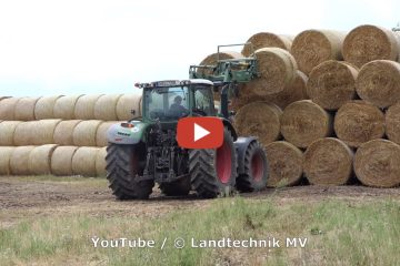 Rundballen sammeln und stapeln mit Fendt 722 und John Deere 6170R jeweils mit Conow BTW und einem Fendt 939 mit zwei Anhängern