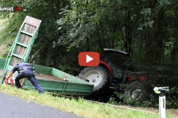 Schwerer Traktorunfall in St. Leonhard bei Freistadt. Ein Traktor stürzte über eine kleine Böschung, zwei Personen wurden laumat.at media e.U.