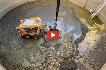 Jauche-Silo mit Epsilon Kran und Bobcat den angesammelten Sandkegel der letzten 33 Jahren entfernt. — Geri Wicki